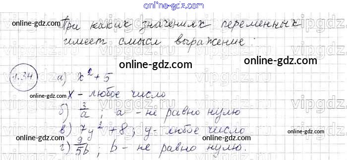 Готовые домашние задания по Алгебре за 7 класс Задачник Мордкович, Александрова Базовый уровень 2013 - § 1. Числовые и алгебраические выражения Глава 1 34