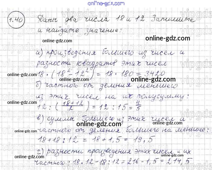 Готовые домашние задания по Алгебре за 7 класс Задачник Мордкович, Александрова Базовый уровень 2013 - § 1. Числовые и алгебраические выражения Глава 1 40