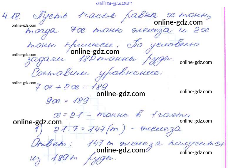 Готовые домашние задания по Алгебре за 7 класс Задачник Мордкович, Александрова Базовый уровень 2013 - § 4. Линейное уравнение с одной переменной Глава 1 18