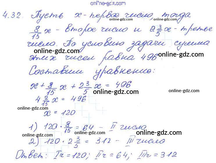 Готовые домашние задания по Алгебре за 7 класс Задачник Мордкович, Александрова Базовый уровень 2013 - § 4. Линейное уравнение с одной переменной Глава 1 32
