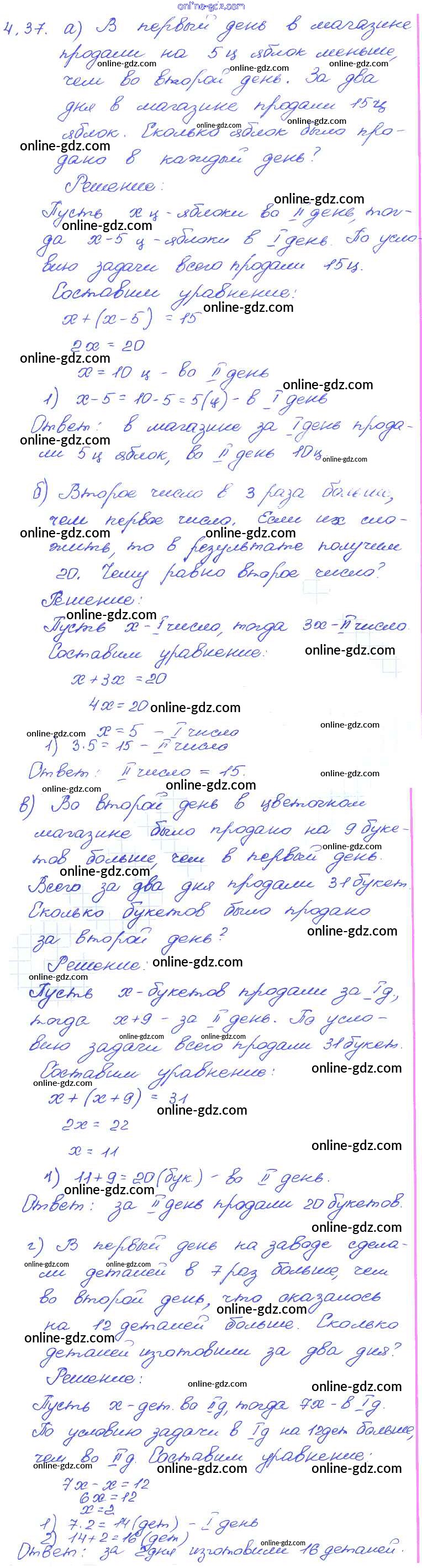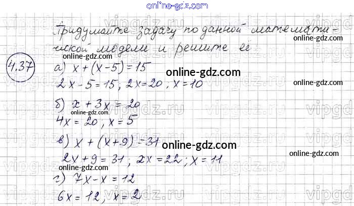 Готовые домашние задания по Алгебре за 7 класс Задачник Мордкович, Александрова Базовый уровень 2013 - § 4. Линейное уравнение с одной переменной Глава 1 37