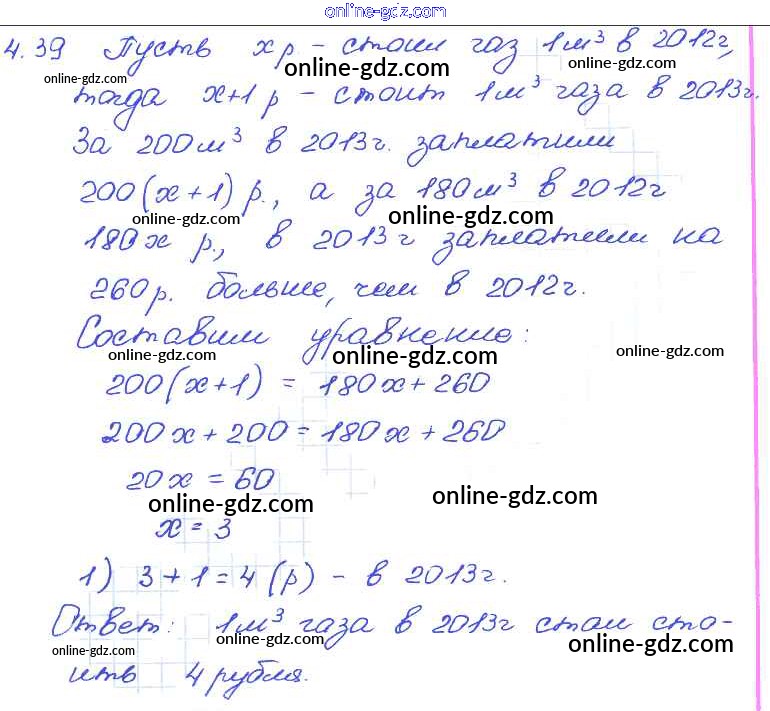 Готовые домашние задания по Алгебре за 7 класс Задачник Мордкович, Александрова Базовый уровень 2013 - § 4. Линейное уравнение с одной переменной Глава 1 39
