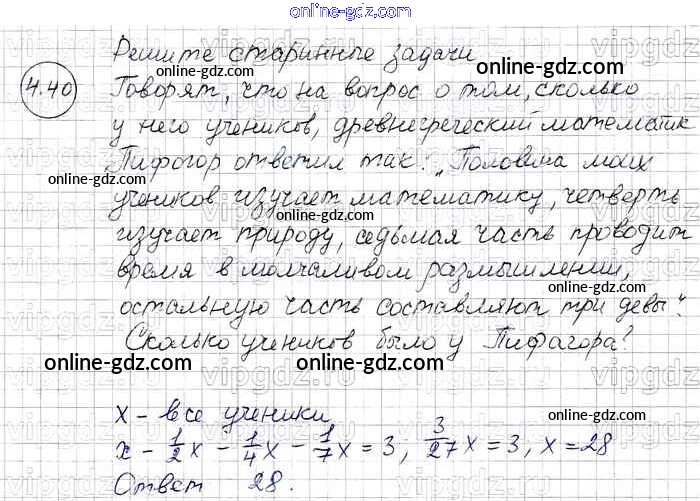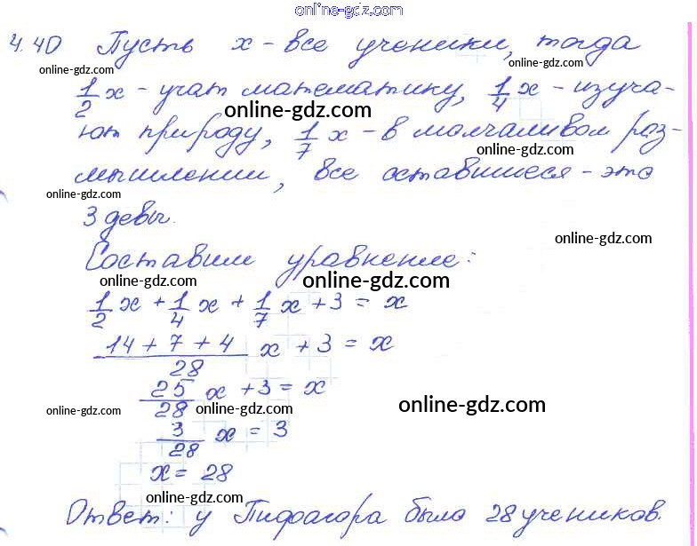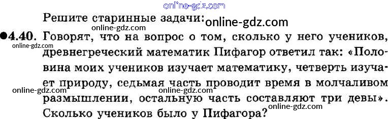 Готовые домашние задания по Алгебре за 7 класс Задачник Мордкович, Александрова Базовый уровень 2013 - § 4. Линейное уравнение с одной переменной Глава 1 40