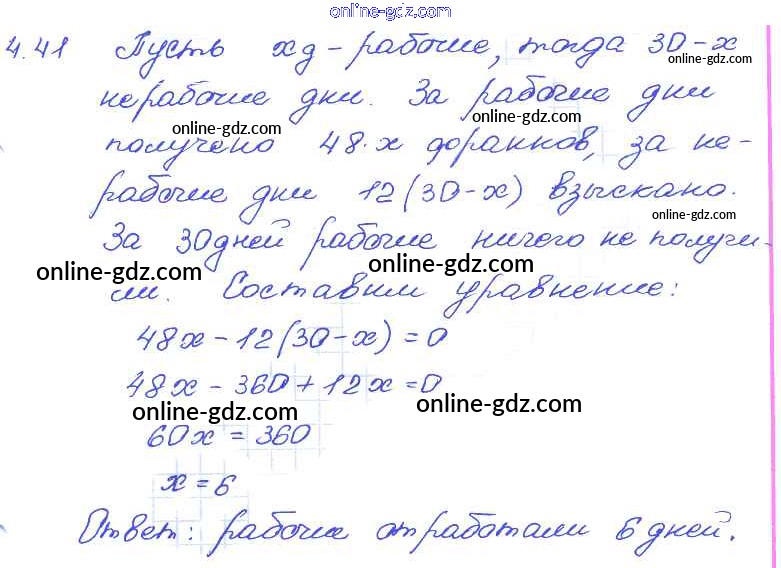 Готовые домашние задания по Алгебре за 7 класс Задачник Мордкович, Александрова Базовый уровень 2013 - § 4. Линейное уравнение с одной переменной Глава 1 41