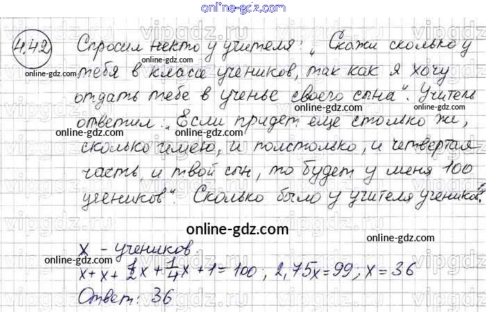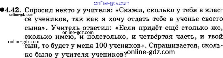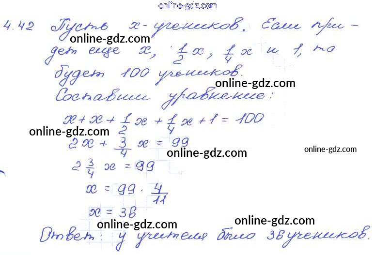Готовые домашние задания по Алгебре за 7 класс Задачник Мордкович, Александрова Базовый уровень 2013 - § 4. Линейное уравнение с одной переменной Глава 1 42
