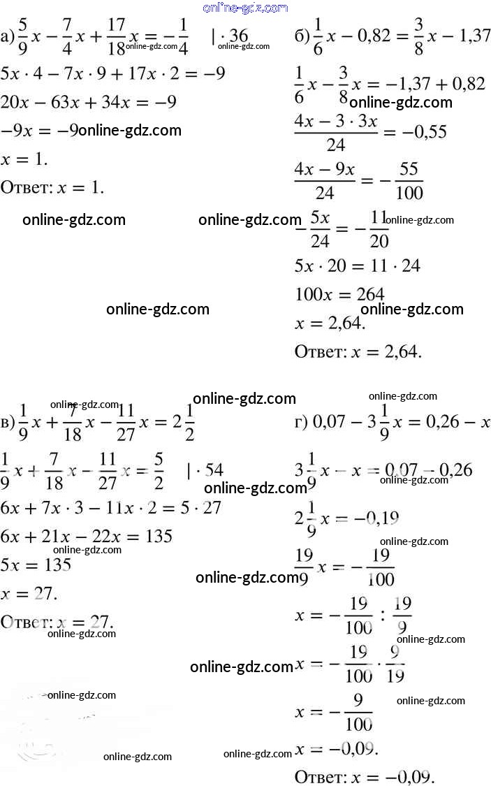 Готовые домашние задания по Алгебре за 7 класс Задачник Мордкович, Александрова Базовый уровень 2013 - § 4. Линейное уравнение с одной переменной Глава 1 6