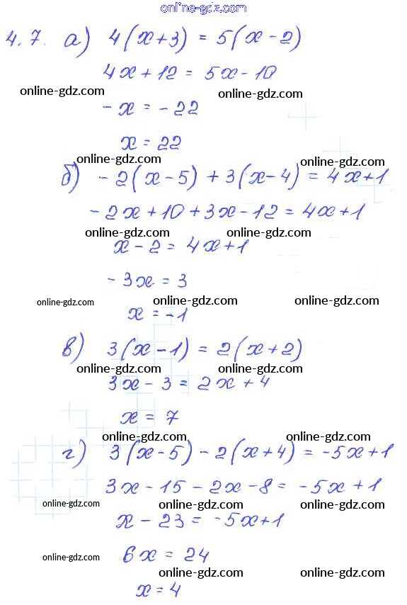 Готовые домашние задания по Алгебре за 7 класс Задачник Мордкович, Александрова Базовый уровень 2013 - § 4. Линейное уравнение с одной переменной Глава 1 7