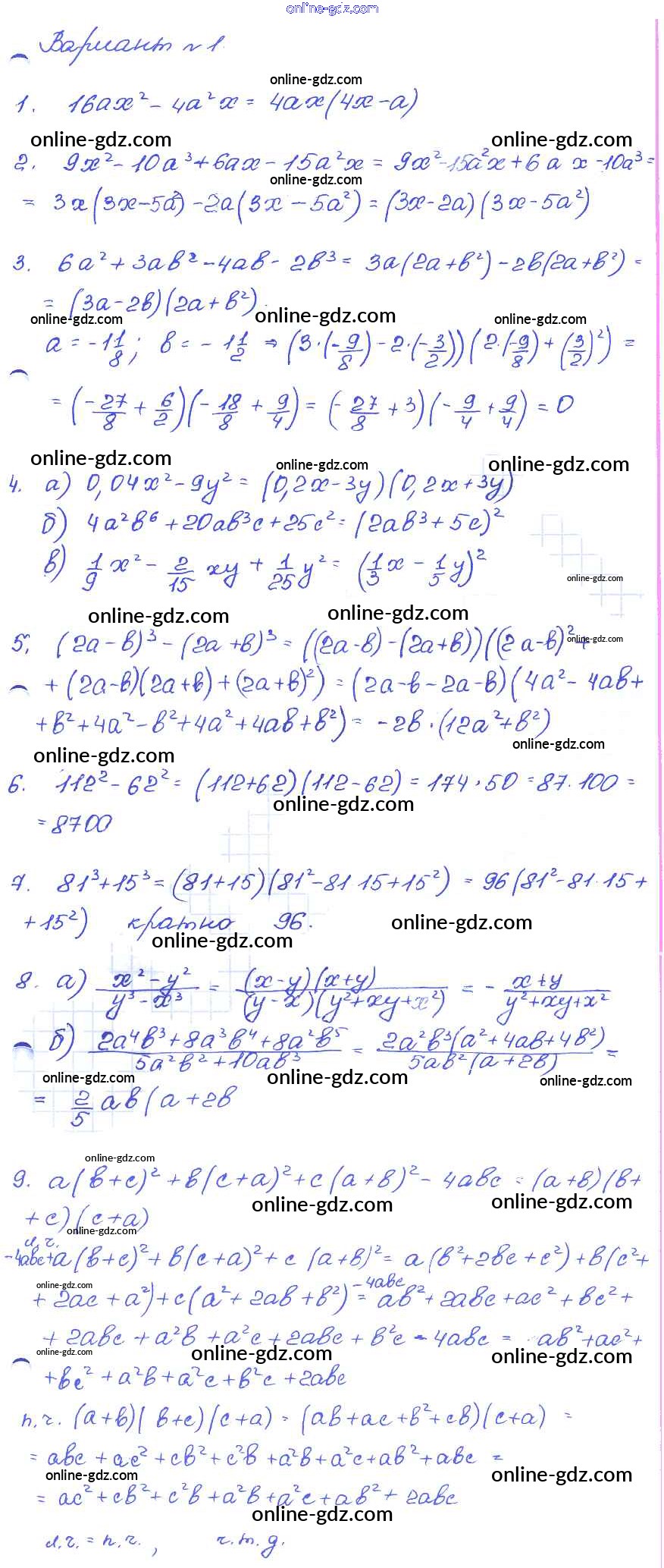 Готовые домашние задания по Алгебре за 7 класс Задачник Мордкович, Александрова Базовый уровень 2013 - № 7 Домашние контрольные работы: 1