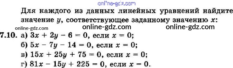 Готовые домашние задания по Алгебре за 7 класс Задачник Мордкович, Александрова Базовый уровень 2013 - § 7. Линейное уравнение с двумя переменными и его график Глава 2 10
