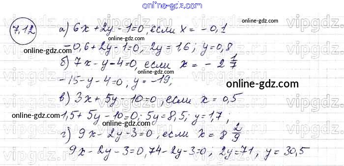 Готовые домашние задания по Алгебре за 7 класс Задачник Мордкович, Александрова Базовый уровень 2013 - § 7. Линейное уравнение с двумя переменными и его график Глава 2 12