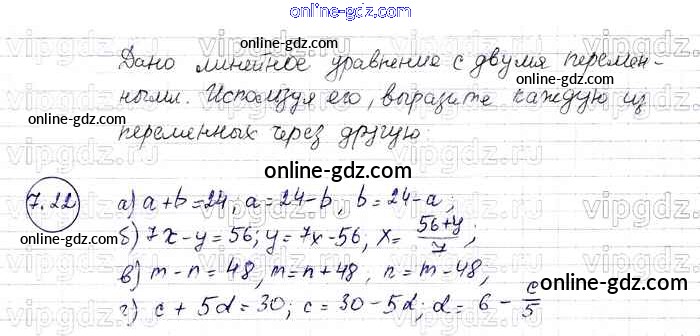 Готовые домашние задания по Алгебре за 7 класс Задачник Мордкович, Александрова Базовый уровень 2013 - § 7. Линейное уравнение с двумя переменными и его график Глава 2 22