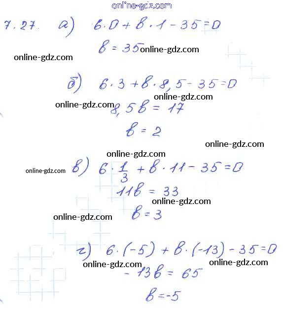 Готовые домашние задания по Алгебре за 7 класс Задачник Мордкович, Александрова Базовый уровень 2013 - § 7. Линейное уравнение с двумя переменными и его график Глава 2 27