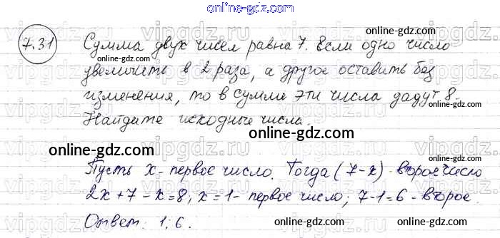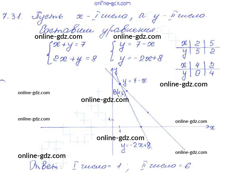 Готовые домашние задания по Алгебре за 7 класс Задачник Мордкович, Александрова Базовый уровень 2013 - § 7. Линейное уравнение с двумя переменными и его график Глава 2 31