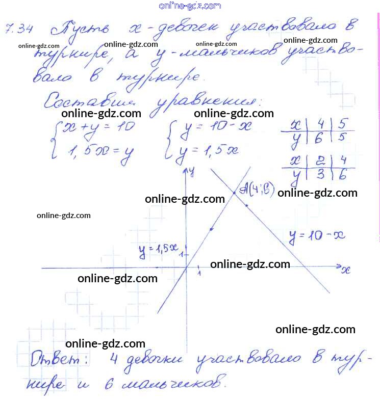 Готовые домашние задания по Алгебре за 7 класс Задачник Мордкович, Александрова Базовый уровень 2013 - § 7. Линейное уравнение с двумя переменными и его график Глава 2 34