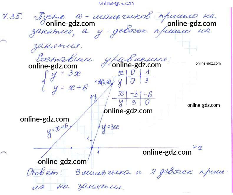 Готовые домашние задания по Алгебре за 7 класс Задачник Мордкович, Александрова Базовый уровень 2013 - § 7. Линейное уравнение с двумя переменными и его график Глава 2 35