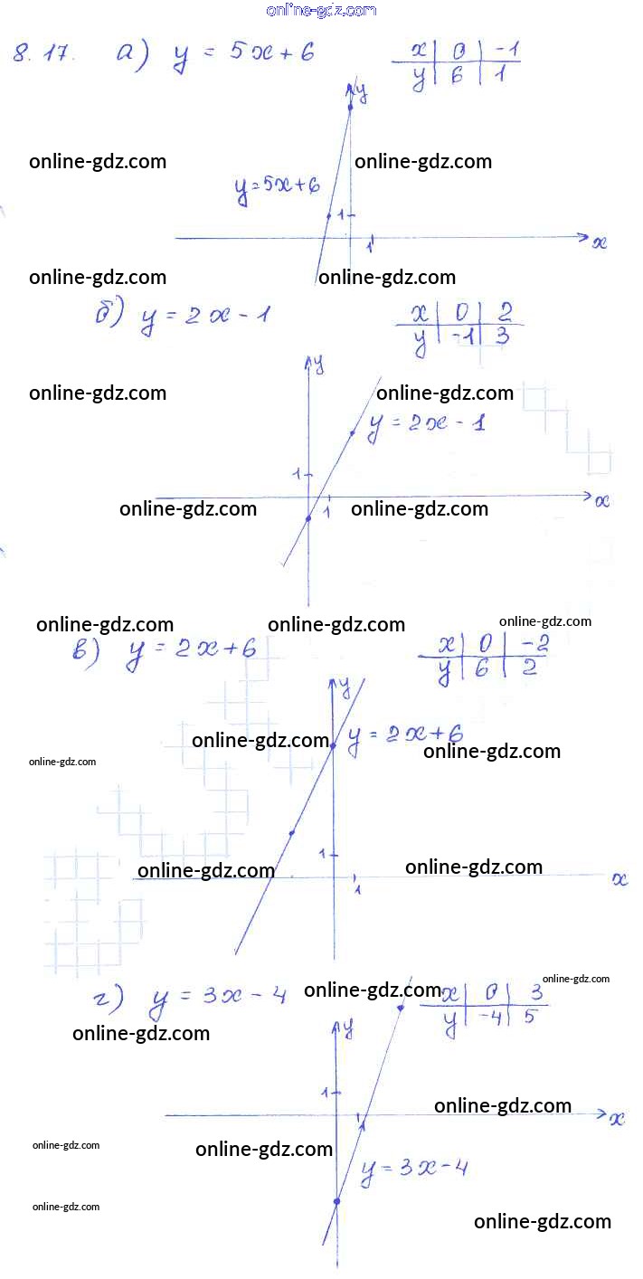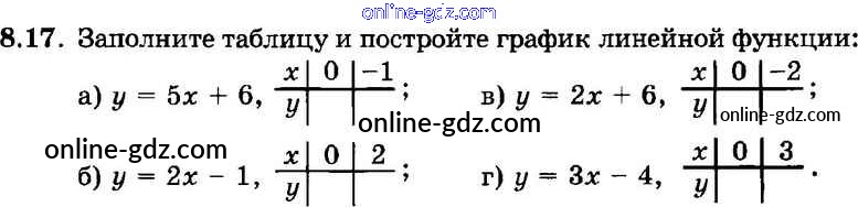 Готовые домашние задания по Алгебре за 7 класс Задачник Мордкович, Александрова Базовый уровень 2013 - § 8. Линейная функция и ее график Глава 2 17