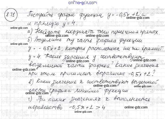Готовые домашние задания по Алгебре за 7 класс Задачник Мордкович, Александрова Базовый уровень 2013 - § 8. Линейная функция и ее график Глава 2 31