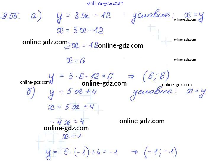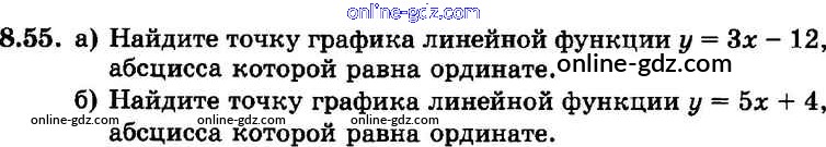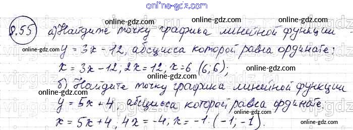 Готовые домашние задания по Алгебре за 7 класс Задачник Мордкович, Александрова Базовый уровень 2013 - § 8. Линейная функция и ее график Глава 2 55