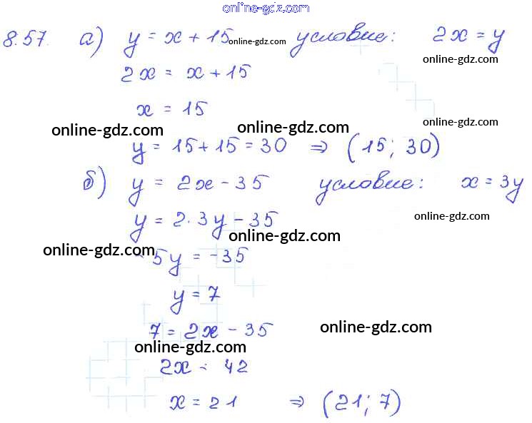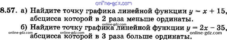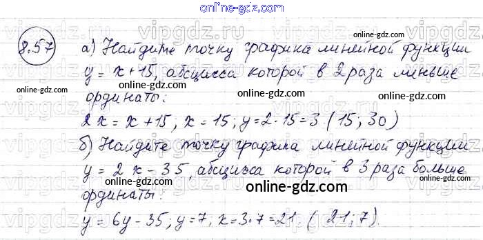 Готовые домашние задания по Алгебре за 7 класс Задачник Мордкович, Александрова Базовый уровень 2013 - § 8. Линейная функция и ее график Глава 2 57