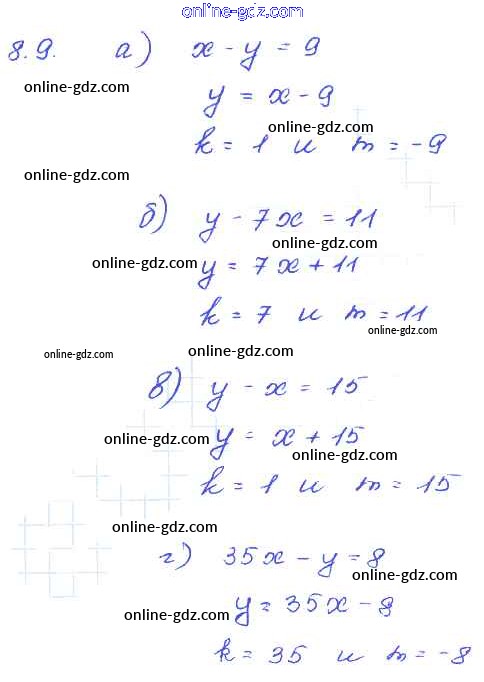 Готовые домашние задания по Алгебре за 7 класс Задачник Мордкович, Александрова Базовый уровень 2013 - § 8. Линейная функция и ее график Глава 2 9