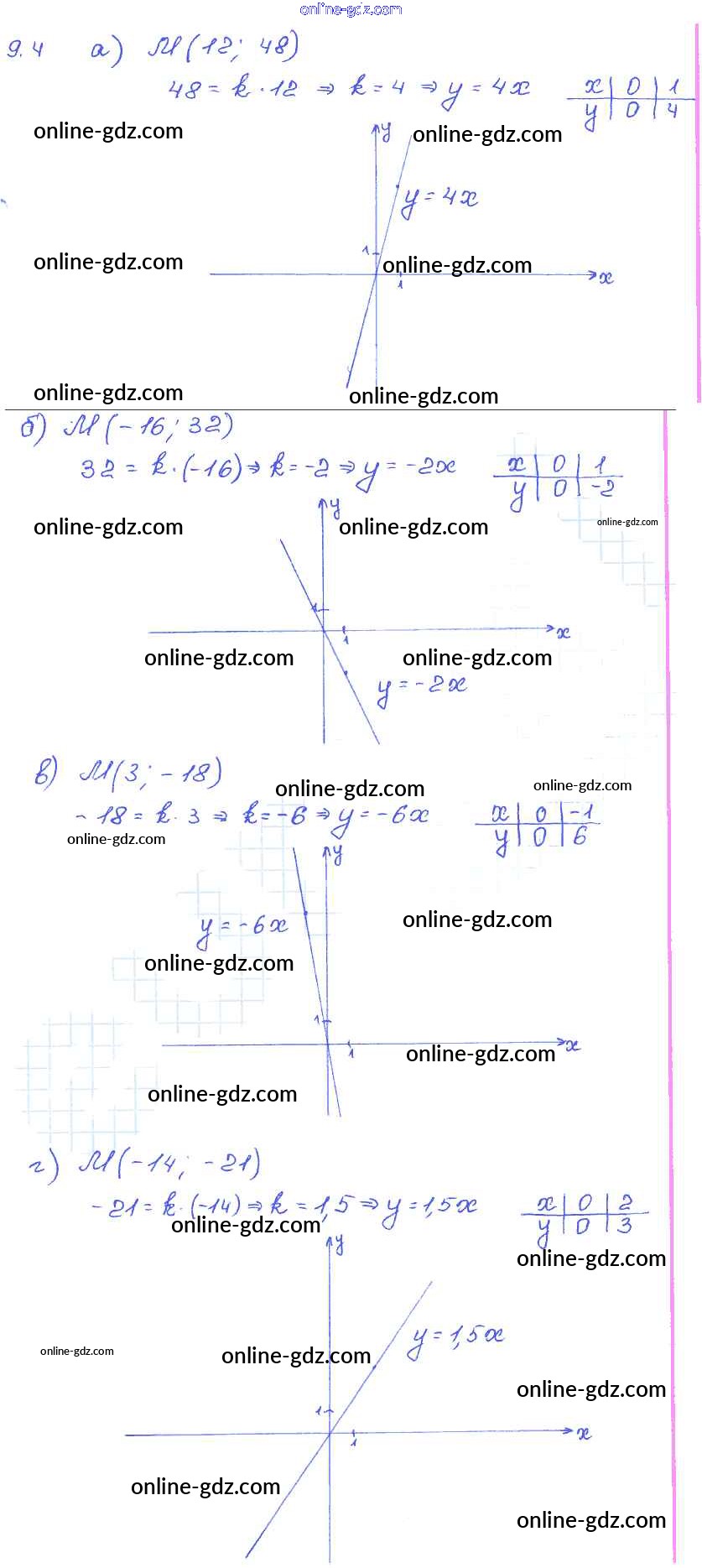 Готовые домашние задания по Алгебре за 7 класс Задачник Мордкович, Александрова Базовый уровень 2013 - § 9. Линейная функция у = кх Глава 2 4