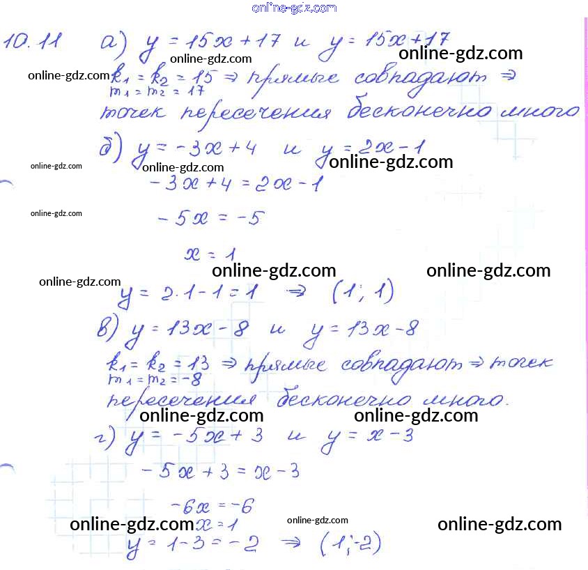 Готовые домашние задания по Алгебре за 7 класс Задачник Мордкович, Александрова Базовый уровень 2013 - § 10. Взаимное расположение графиков линейных функций Глава 2 11