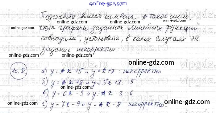 Готовые домашние задания по Алгебре за 7 класс Задачник Мордкович, Александрова Базовый уровень 2013 - § 10. Взаимное расположение графиков линейных функций Глава 2 8