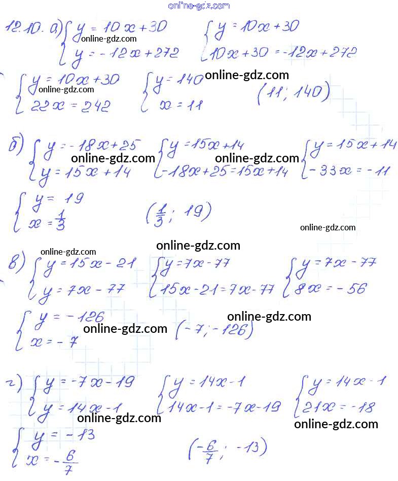 Готовые домашние задания по Алгебре за 7 класс Задачник Мордкович, Александрова Базовый уровень 2013 - § 12. Метод подстановки Глава 3 10