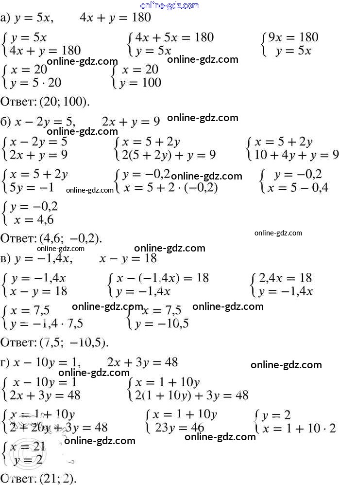 Готовые домашние задания по Алгебре за 7 класс Задачник Мордкович, Александрова Базовый уровень 2013 - § 12. Метод подстановки Глава 3 11