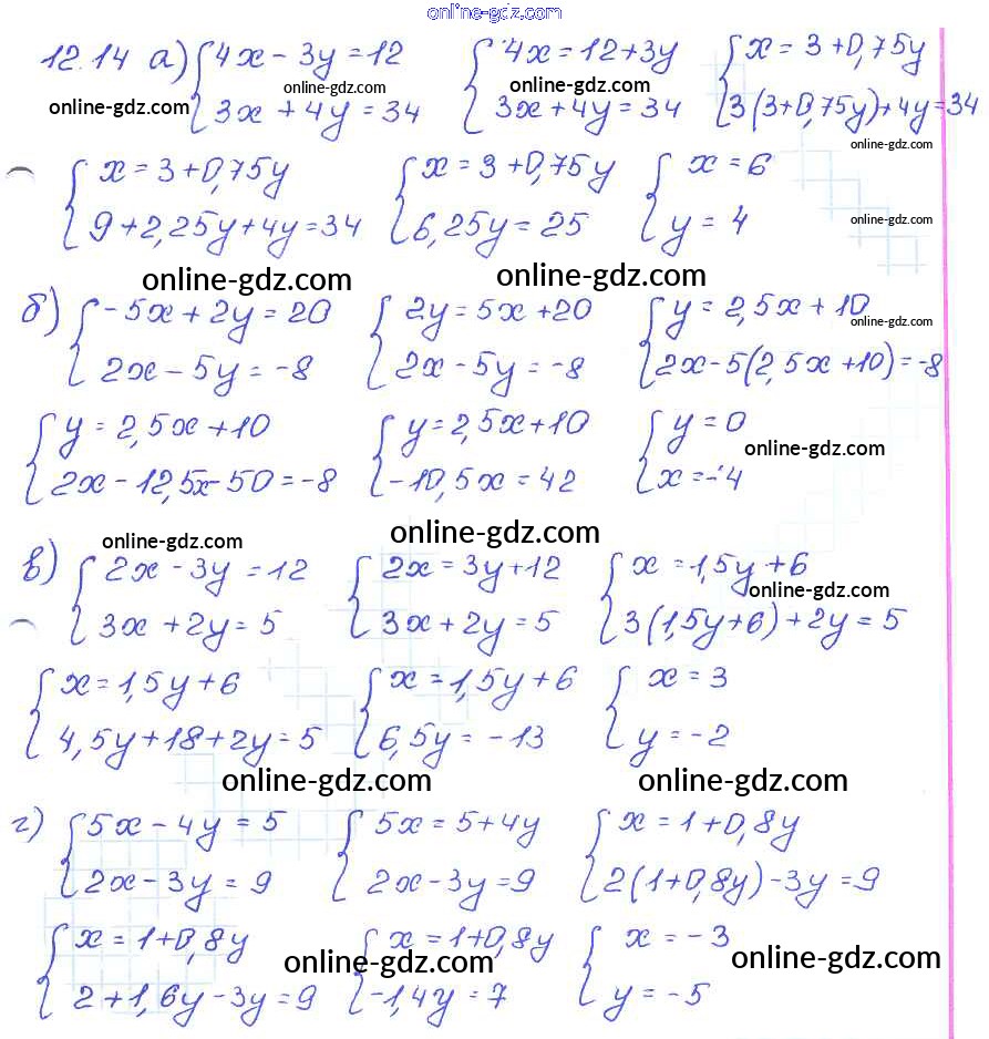 Готовые домашние задания по Алгебре за 7 класс Задачник Мордкович, Александрова Базовый уровень 2013 - § 12. Метод подстановки Глава 3 14