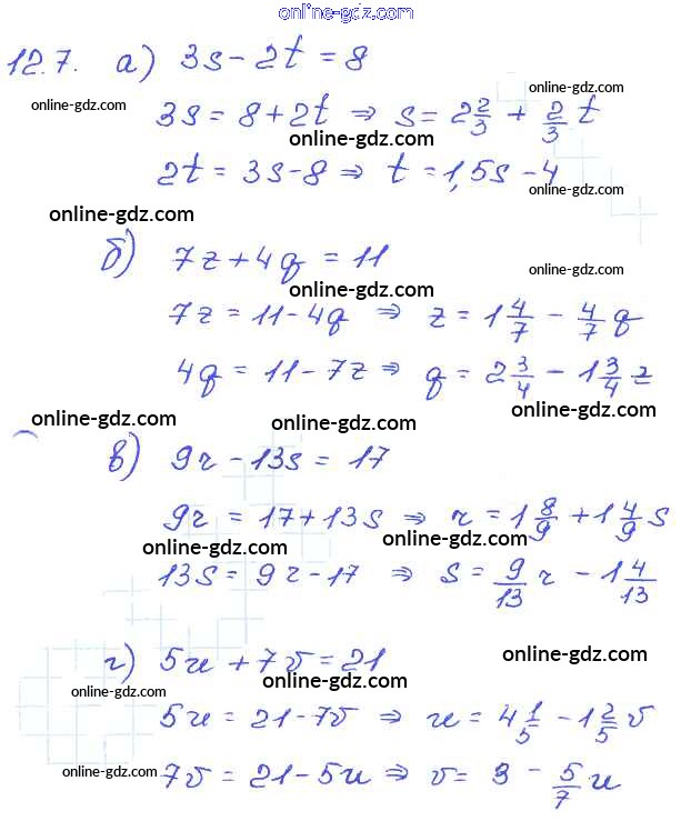 Готовые домашние задания по Алгебре за 7 класс Задачник Мордкович, Александрова Базовый уровень 2013 - § 12. Метод подстановки Глава 3 7