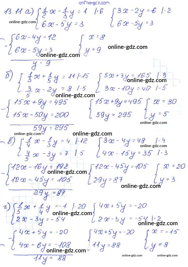 Готовые домашние задания по Алгебре за 7 класс Задачник Мордкович, Александрова Базовый уровень 2013 - § 13. Метод алгебраического сложения Глава 3 11