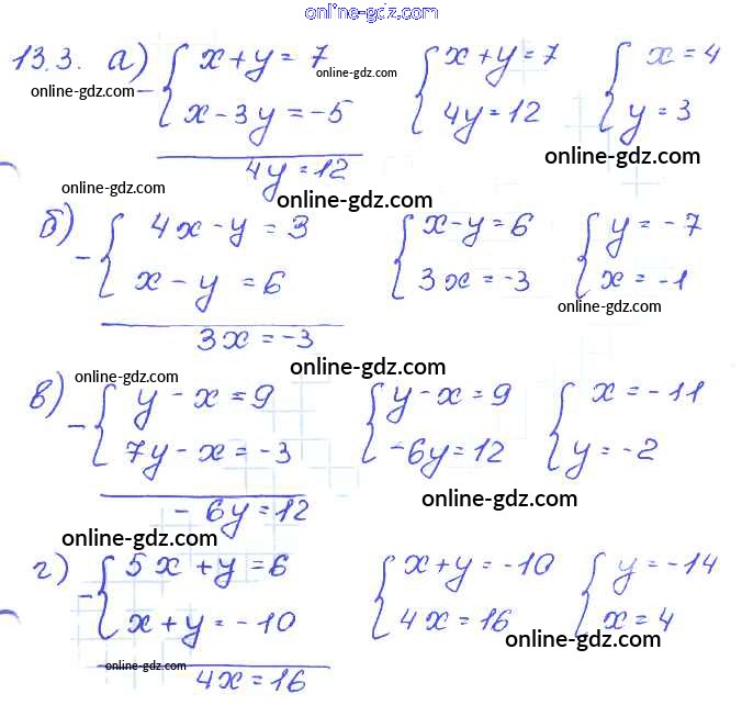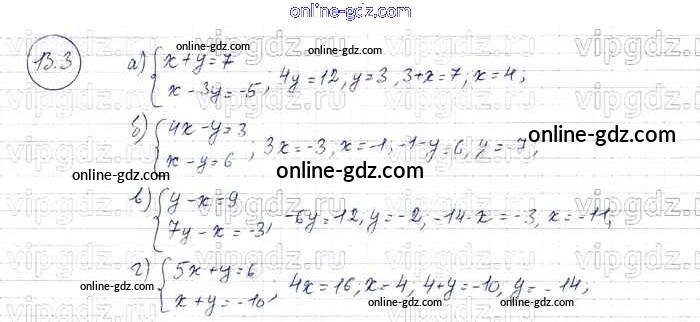 Готовые домашние задания по Алгебре за 7 класс Задачник Мордкович, Александрова Базовый уровень 2013 - § 13. Метод алгебраического сложения Глава 3 3