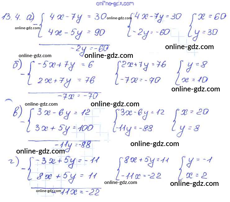 Готовые домашние задания по Алгебре за 7 класс Задачник Мордкович, Александрова Базовый уровень 2013 - § 13. Метод алгебраического сложения Глава 3 4