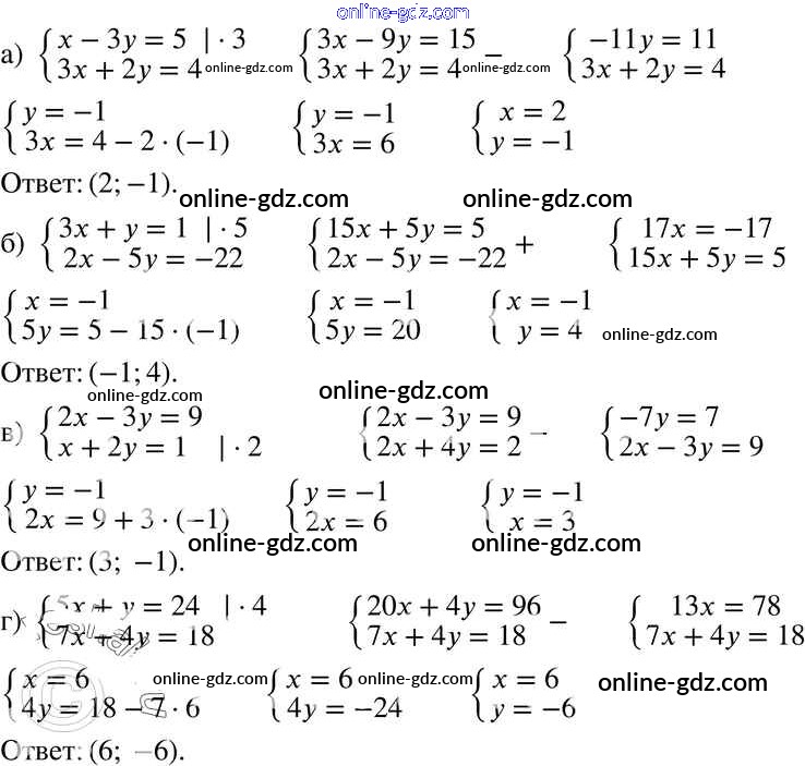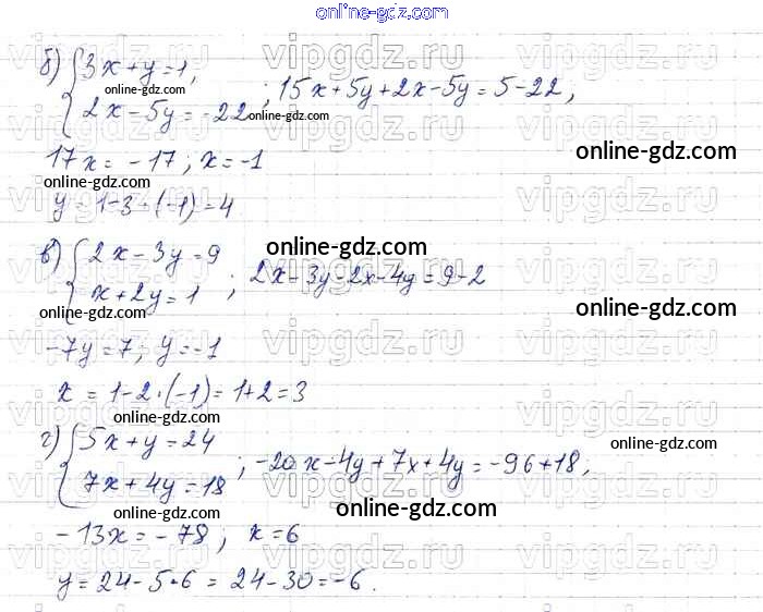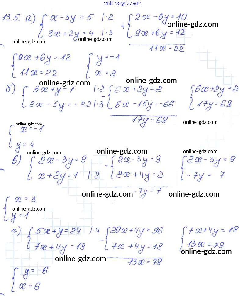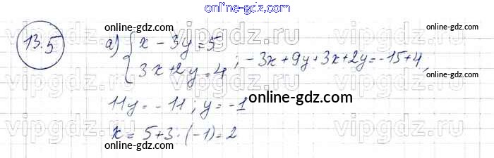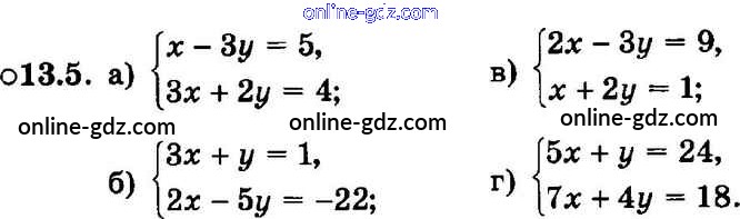 Готовые домашние задания по Алгебре за 7 класс Задачник Мордкович, Александрова Базовый уровень 2013 - § 13. Метод алгебраического сложения Глава 3 5