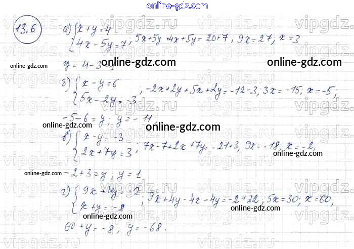 Готовые домашние задания по Алгебре за 7 класс Задачник Мордкович, Александрова Базовый уровень 2013 - § 13. Метод алгебраического сложения Глава 3 6