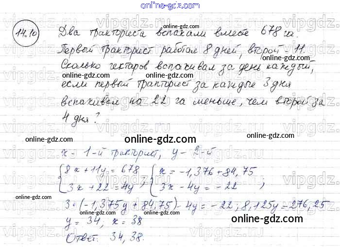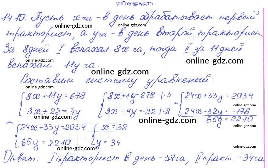 Готовые домашние задания по Алгебре за 7 класс Задачник Мордкович, Александрова Базовый уровень 2013 - § 14. Системы двух линейных уравнений с двумя переменными как математические модели реальных ситуаций Глава 3 10