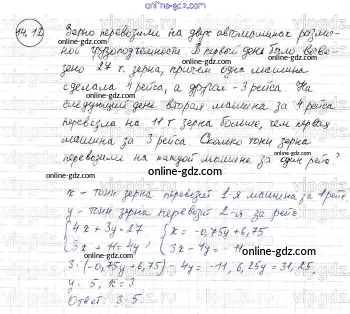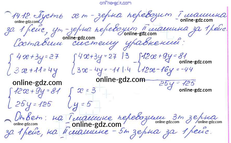 Готовые домашние задания по Алгебре за 7 класс Задачник Мордкович, Александрова Базовый уровень 2013 - § 14. Системы двух линейных уравнений с двумя переменными как математические модели реальных ситуаций Глава 3 12