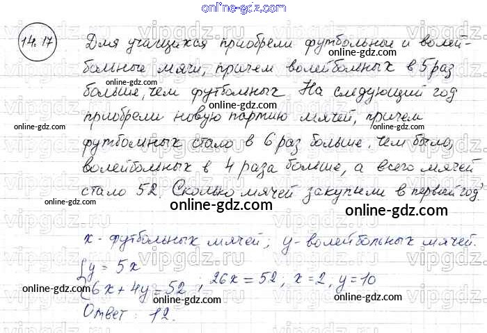 Готовые домашние задания по Алгебре за 7 класс Задачник Мордкович, Александрова Базовый уровень 2013 - § 14. Системы двух линейных уравнений с двумя переменными как математические модели реальных ситуаций Глава 3 17