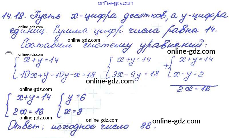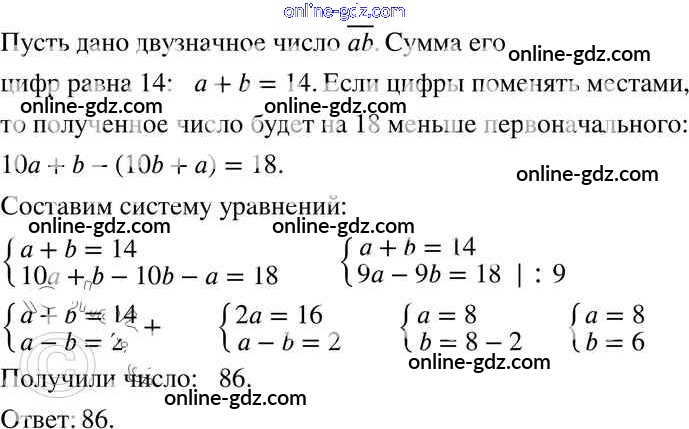 Готовые домашние задания по Алгебре за 7 класс Задачник Мордкович, Александрова Базовый уровень 2013 - § 14. Системы двух линейных уравнений с двумя переменными как математические модели реальных ситуаций Глава 3 18