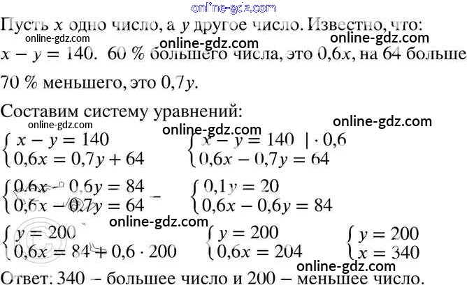 Готовые домашние задания по Алгебре за 7 класс Задачник Мордкович, Александрова Базовый уровень 2013 - § 14. Системы двух линейных уравнений с двумя переменными как математические модели реальных ситуаций Глава 3 19