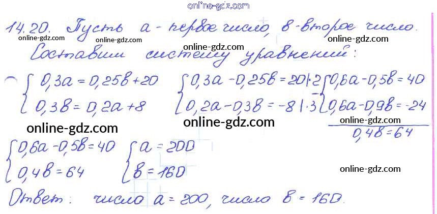 Готовые домашние задания по Алгебре за 7 класс Задачник Мордкович, Александрова Базовый уровень 2013 - § 14. Системы двух линейных уравнений с двумя переменными как математические модели реальных ситуаций Глава 3 20