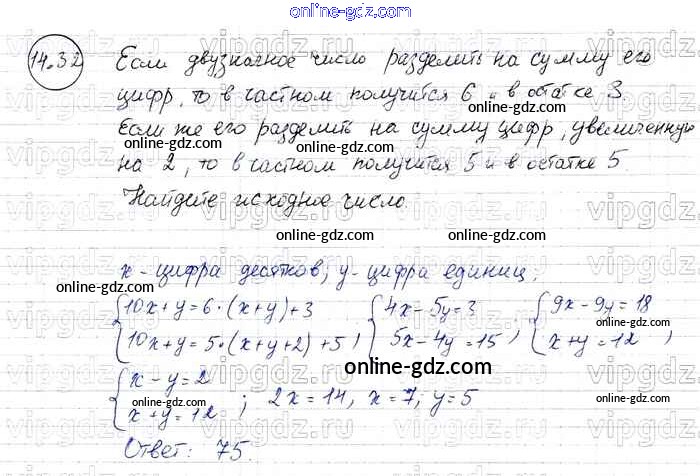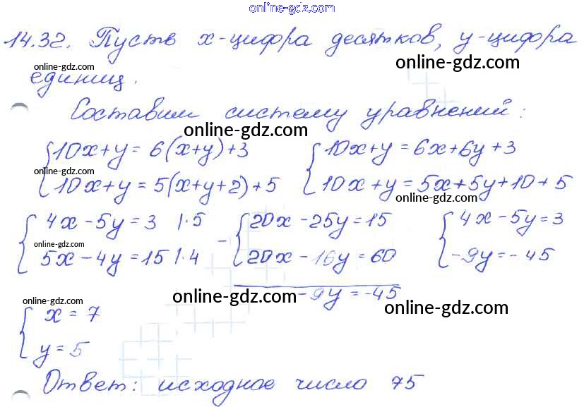 Готовые домашние задания по Алгебре за 7 класс Задачник Мордкович, Александрова Базовый уровень 2013 - § 14. Системы двух линейных уравнений с двумя переменными как математические модели реальных ситуаций Глава 3 32