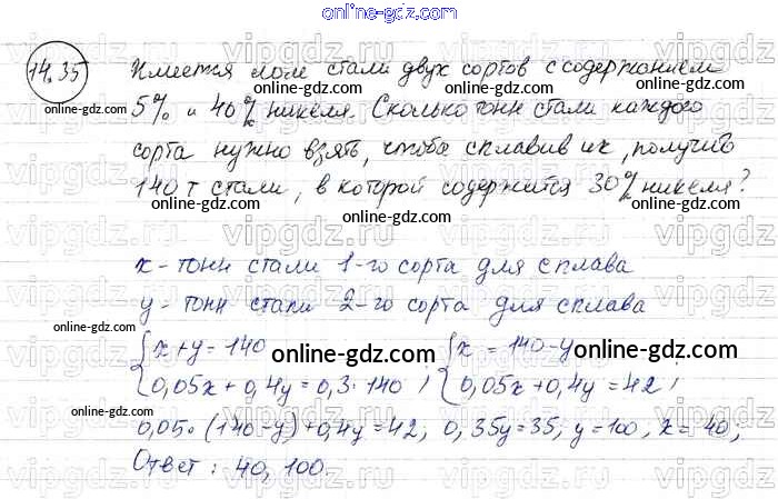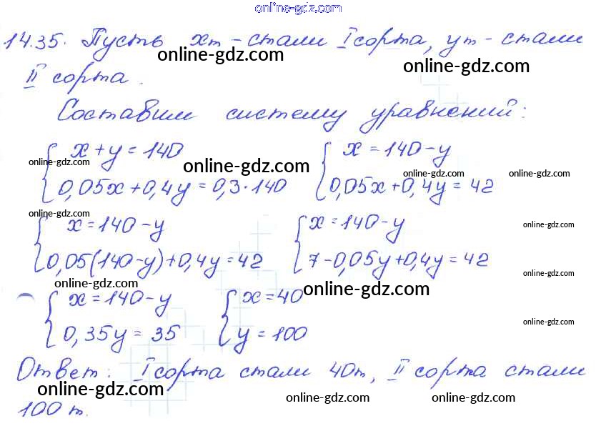 Готовые домашние задания по Алгебре за 7 класс Задачник Мордкович, Александрова Базовый уровень 2013 - § 14. Системы двух линейных уравнений с двумя переменными как математические модели реальных ситуаций Глава 3 35