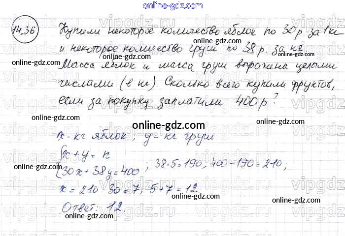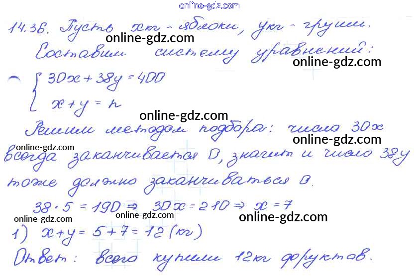 Готовые домашние задания по Алгебре за 7 класс Задачник Мордкович, Александрова Базовый уровень 2013 - § 14. Системы двух линейных уравнений с двумя переменными как математические модели реальных ситуаций Глава 3 36