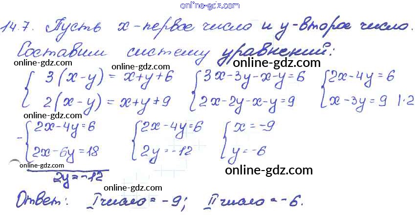 Готовые домашние задания по Алгебре за 7 класс Задачник Мордкович, Александрова Базовый уровень 2013 - § 14. Системы двух линейных уравнений с двумя переменными как математические модели реальных ситуаций Глава 3 7