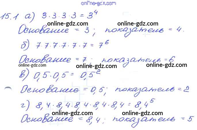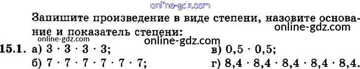 Готовые домашние задания по Алгебре за 7 класс Задачник Мордкович, Александрова Базовый уровень 2013 - § 15. Что такое степень с натуральным показателем Глава 4 1