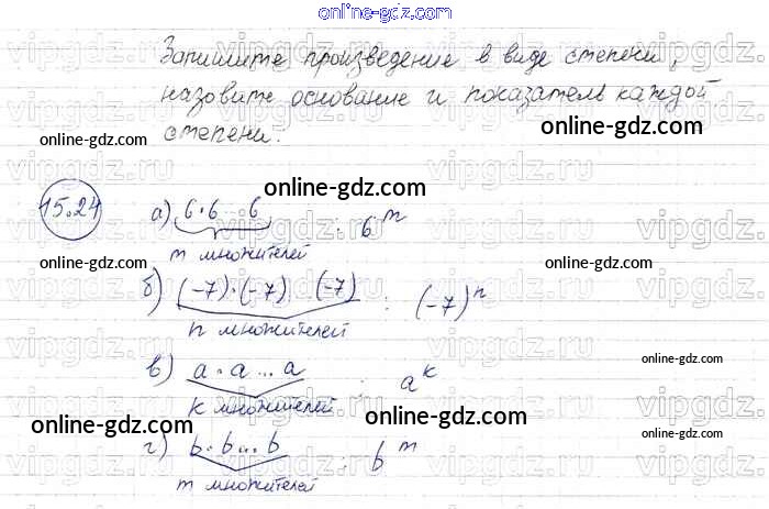 Готовые домашние задания по Алгебре за 7 класс Задачник Мордкович, Александрова Базовый уровень 2013 - § 15. Что такое степень с натуральным показателем Глава 4 24