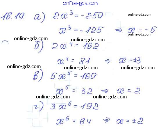 Готовые домашние задания по Алгебре за 7 класс Задачник Мордкович, Александрова Базовый уровень 2013 - § 16. Таблица основных степеней Глава 4 19