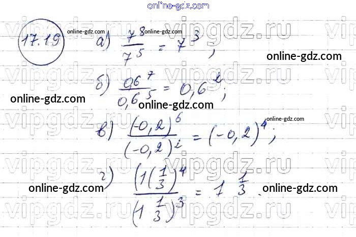 Готовые домашние задания по Алгебре за 7 класс Задачник Мордкович, Александрова Базовый уровень 2013 - § 17. Свойства степени с натуральными показателями Глава 4 19